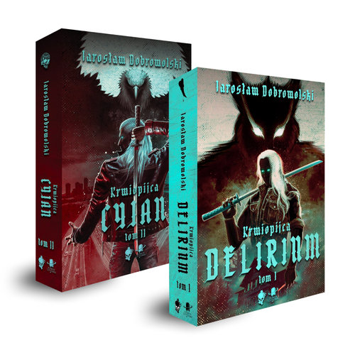 Poznaj historię upadłego wampira, który poszukuje swojej przeszłości. Odwiedź Bieszczady, Lublin i Warszawę. Odkryj mistyczne tajemnice oraz kryminalne zagadki. Pakiet to dwie, opublikowane dotychczas części serii Krwiopijca. Delirium: Rzuć wszystko i wyprowadź się w Bieszczady. Jak się okazuje, jest to maksyma, którą może pokierować się nawet wampir. ? Konrad jest krwiopijcą, nieśmiertelną istotą nocy. Męczony przez resztki sumienia wyprowadza się w Bieszczady, by egzystować w spokoju jak najdalej od pokus żywienia się ludzką krwią. Nieznośne pragnienie i nawracające koszmary nie ułatwiają mu tego zadania, podobnie jak wścibscy sąsiedzi. Odludny azyl krwiopijcy zostaje naruszony, gdy na progu jego samotni staje barman i prosi o udzielenie pomocy ofiarom wypadku drogowego. Od tego momentu, wbrew sobie, Konrad zostaje wciągnięty w wir dziwnych i mrocznych wydarzeń. Nagle okazuje się, że demony przeszłości to jego najmniejszy problem… Delirium to debiutancka powieść Jarosława Dobrowolskiego, która szturmem zdobyła serca czytelników. Chwalona za niezwykły klimat, humor oraz zwroty akcji. Rozbudowane postaci zaprezentowane przez autora stały się jego znakiem rozpoznawczym, a przystępny język oraz atmosfera napięcia i tajemnicy sprawiają, że pomimo sporej objętości czyta się ją jednym tchem. Cyjan: Po nieudanym odwyku w Bieszczadach, Konrad Harkov – przesycony skrupułami upadły wampir – postanawia rozwiązać zagadkę swojego istnienia. W tym celu wraca do Lublina, gdzie przed trzydziestu laty wszystko się dla niego zaczęło. Jak przyjmą go dawni przyjaciele i co uczynią zajadli wrogowie? Czy zło, które nawiedziło Bieszczady, podąży za nim, by siać terror? Pełen tajemnic kryminał, mroczny humor i akcja w świecie urban fantasy, gdzie rządzące nocą wampiry są tylko jedną z wielu ras, o których z trwogą szeptali dawni Słowianie. Odkryj nowe oblicze Krwiopijcy i wraz z nim szukaj prawdy. Uważaj tylko, gdyż odpowiedzi na niektóre pytania mogą okazać się gorsze niż niewiedza… Cyjan to kontynuacja świetnie przyjętego Delirium i drugie wejrzenie w świat Krwiopijcy. Ceniona za świetny klimat i akcję nie pozwalającą czytelnikowi odetchnąć ani na chwilę, wprowadza nas na ulice miast, na których można spotkać nie tylko wampiry, ale wszelkiej maści stwory i demony. To tutaj poszukamy odpowiedzi na pytania nurtujące tytułowego Krwiopijcę oraz staniemy u progu konfliktu zrodzonego z pragnienia zemsty.