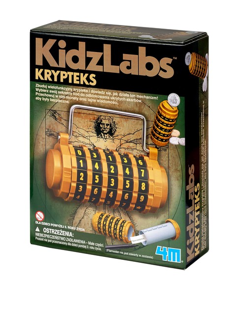 Zbuduj wielofunkcyjny krypteks i dowiedz się, jak działa ten mechanizm! Wybierz swój sekretny kod do odblokowania ukrytych skarbów. Przechowuj w nim monety oraz tajne wiadomości, aby były bezpieczne.Zawartość:elementy krypteksunaklejkiZestaw nie zawiera wymaganych:małego śrubokrętu krzyżakowegoflamastra