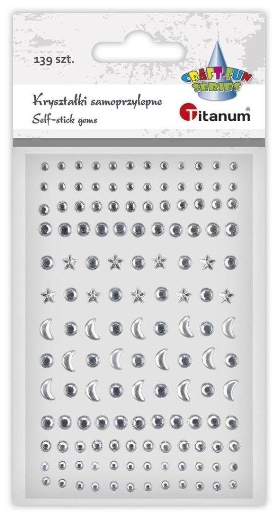 Kryształki samoprzylepne mix wzorów okrągłe 3/4/5mm, księżyce 4x7mm, gwiazdki 5mm 139szt.