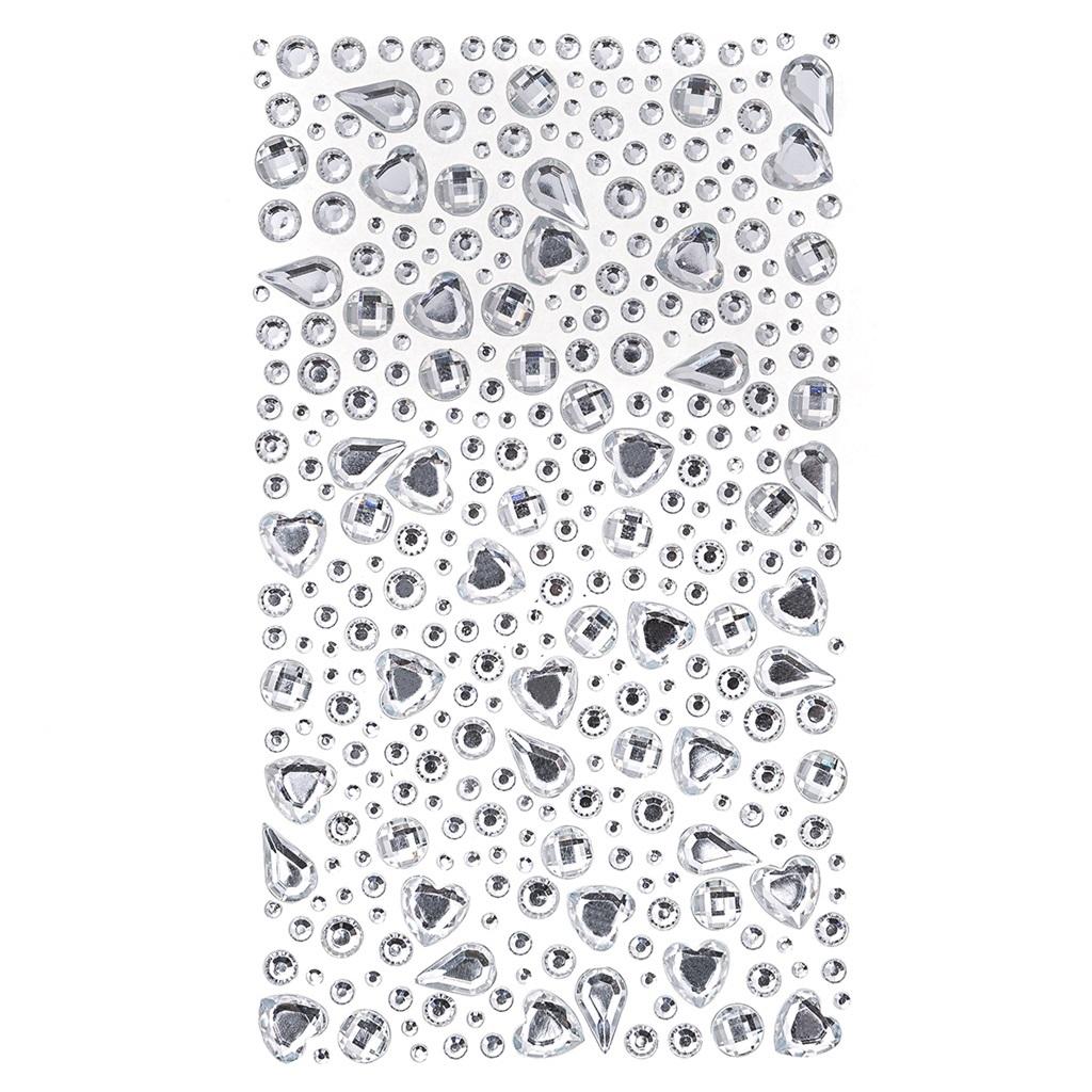 Zestaw 250 kryształków samoprzylepnych różnej wielkości i kształtów.