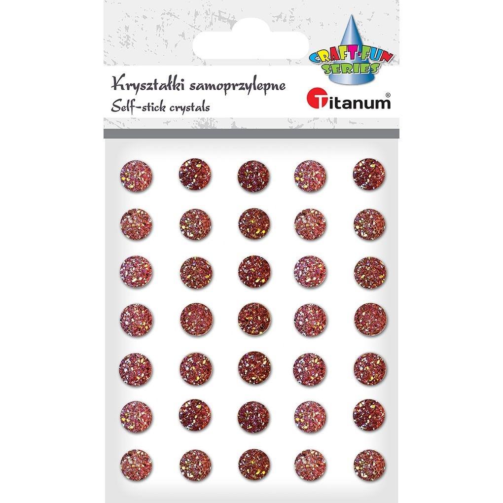 Kryształki samoprzylepne plastikowe okrągłe 10mm brokatowe 35szt. wypukłe czerwono-złote