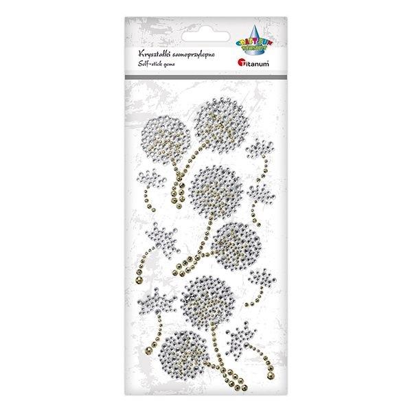 Kryształki samoprzylepne dmuchawce podwójne 70 x 75 mm, pojedyncze 27 x 43, 20 x 28 mm złoto-białe 10szt.