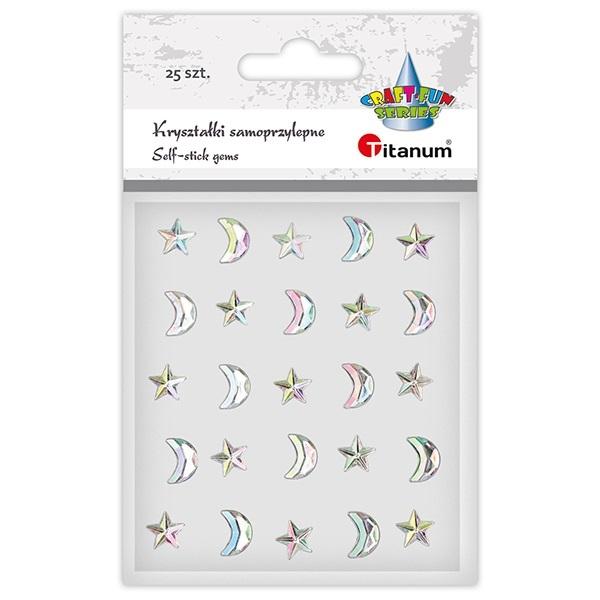 Kryształki samoprzylepne gwiazdki 10x10mm, księżyce 8x12mm srebrne 25szt.
