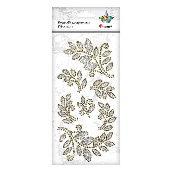 Kryształki samoprzylepne łodygi z liśćmi mix rozmiarów złoto-białe 7 szt.