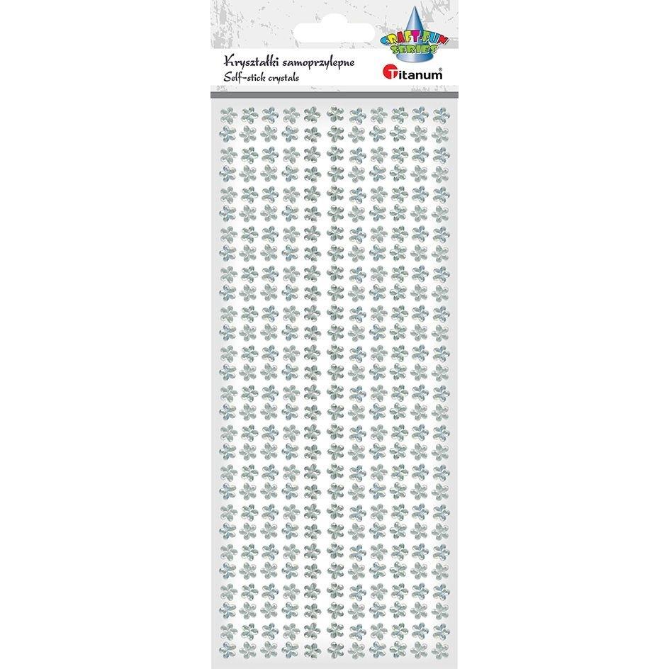 Samoprzylepne kryształki na pasku, rodzaj: kwiatki, średnica: 6 mm, kolor: białe, 308szt