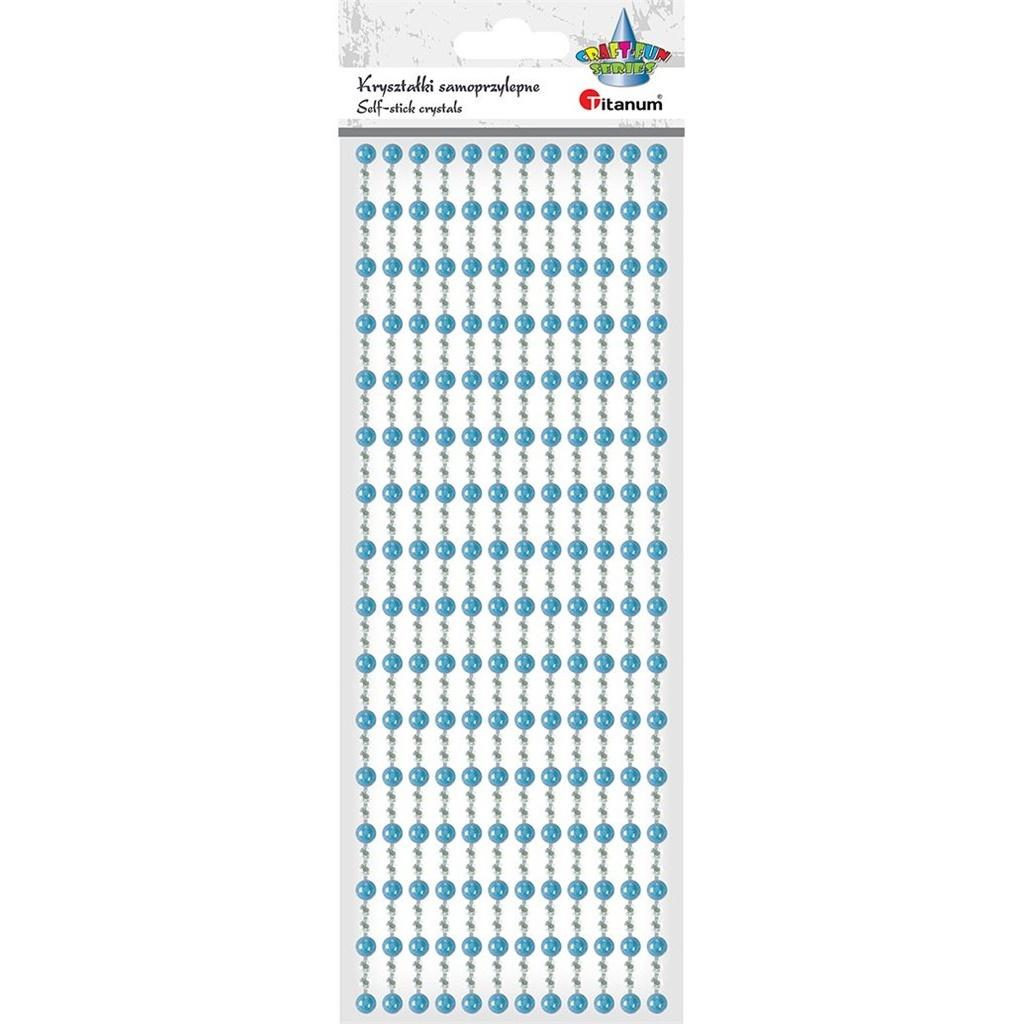 Kryształki samoprzylepne plastikowe na pasku 258mm okrągłe 12szt. półperełki 6mm i fasetowane 4mm bladoniebieskie/srebrne