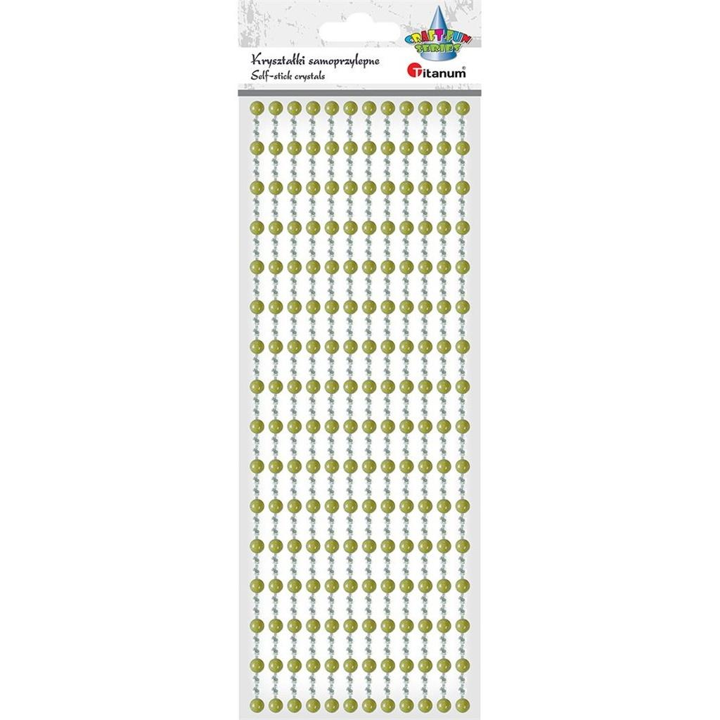 Kryształki samoprzylepne plastikowe na pasku 258mm okrągłe 12szt. półperełki 6mm i fasetowane 4mm bladożółte/srebrne