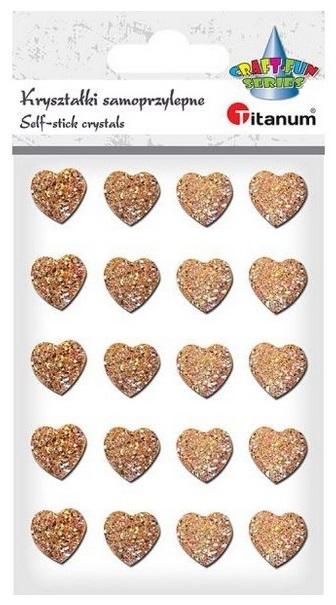 Kryształki samoprzylepne plastikowe serca 14x14mm brokatowe 35szt. wypukłe pomarańczowo-złote