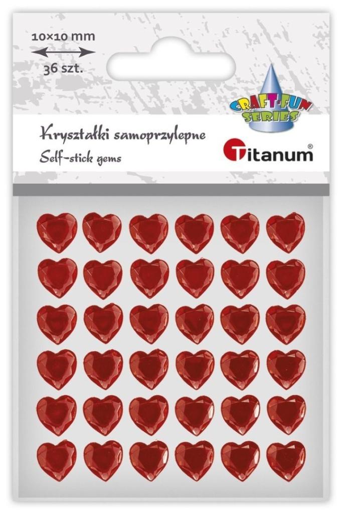 Kryształki samoprzylepne serca 10x10mm czerwone 36szt.