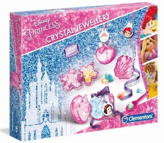 Disney księżniczki Kryształowe klejnoty Zawartość: probówka z korkiem rękawiczki lateksowe pęseta, szpatułka torebki z ałunem (siarczan glinowo-potasowy) wisiorki z tworzywa sztucznego i kartonowe kubeczek z miarką i zakrętką kolorowe wstążki instrukcja obsługi Wiek 8+