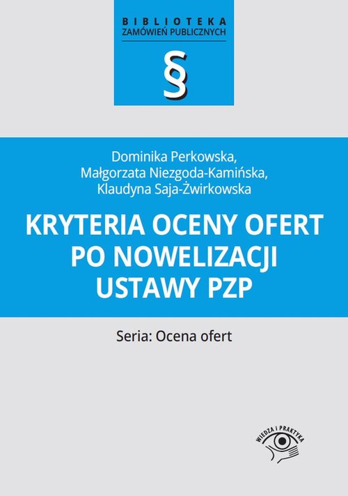 Książka zawiera: • Obszerne omówienie tematyki kryteriów oceny ofert po zmianach, • Konkretne przykłady kryteriów oceny oferty możliwych do zastosowania w przetargu, • Orzecznictwo Krajowej Izby Odwoławczej oraz odpowiedzi ekspertów na najczęściej się pojawiające problemy. Publikacja skupia się na praktycznych przykładach, które ilustrują, w jaki sposób wyznaczać kryteria oceny ofert po nowelizacji i nie naruszyć nowych przeisów ustawy Pzp.