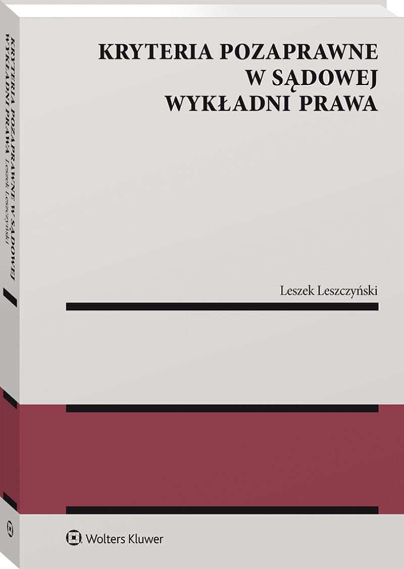 Publikacja omawia role, jakie pełnią kryteria pozaprawne, związane głównie z wartościami oraz normami moralnymi, politycznymi i ekonomicznymi, w procesie sądowej wykładni prawa w ramach polskiego porządku prawnego. Zaprezentowane wnioski są wynikiem wieloletnich badań orzecznictwa sądów polskich - działających zarówno w warunkach systemu autokratycznego, jak i demokratyczno-rynkowego - oraz Europejskiego Trybunału Praw Człowieka i Trybunału Sprawiedliwości Unii Europejskiej. "Książka to oryginalne podejście oparte na gruntownej analizie orzecznictwa sądowego oraz osobistych doświadczeń Autora jako sędziego. Trudno przecenić takie opisowe, empiryczne podejście do tak ważnej problematyki. Z pewnością dla wielu czytelników lektura książki będzie odkrywaniem nieznanych dotąd obszarów dyskursu interpretacyjnego". Z recenzji prof. dr. hab. Z. Tobora