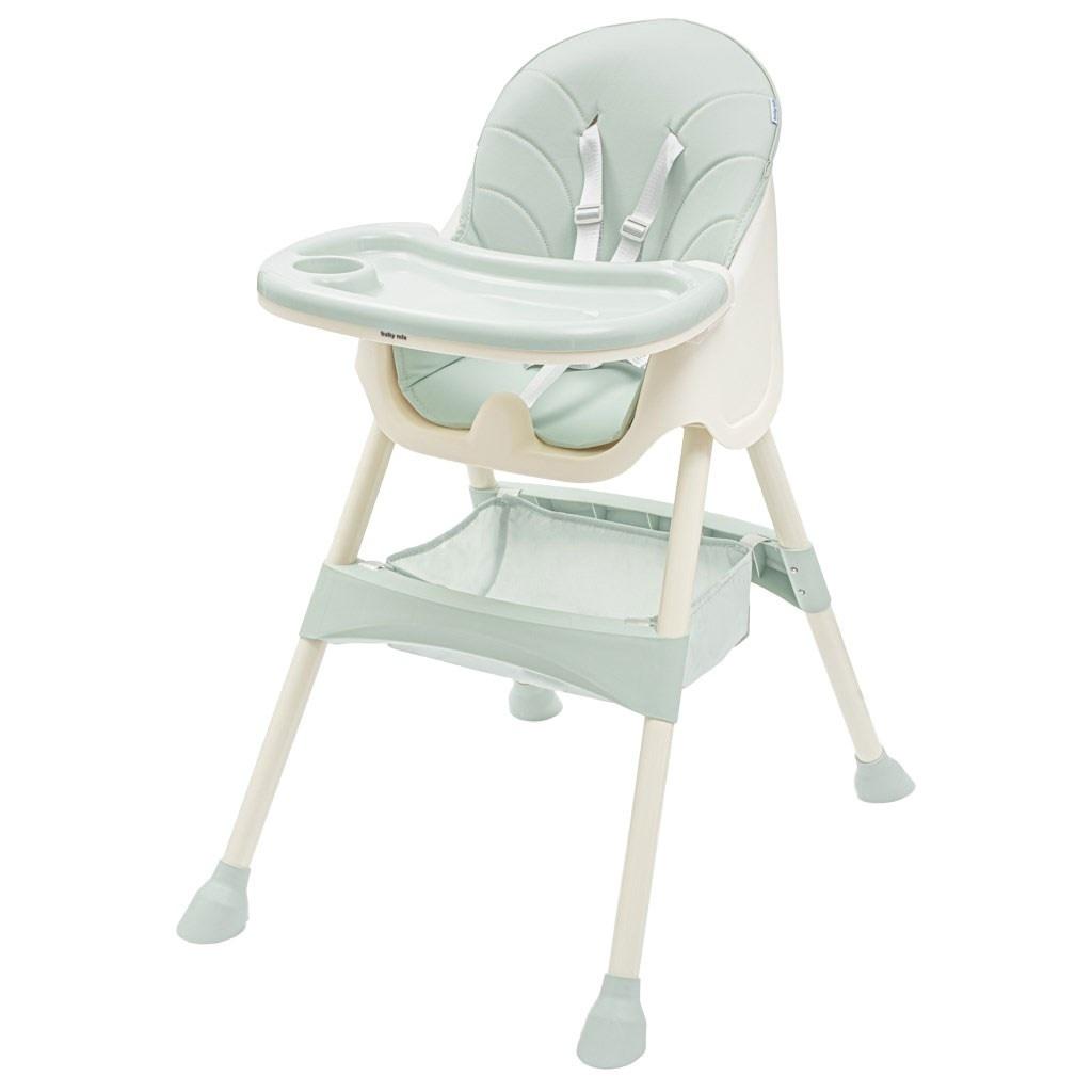 5-punktowy pas zapewni dziecku bezpieczeństwo, a podnóżek wygodę. Pokrowiec można w każdej chwili wyczyścić wilgotną szmatką. Krzesełko można łatwo przekształcić w niskie krzesełko, zdejmując dolną część nóg. Materiałowy kosz jest wystarczająco pojemny, aby przechowywać niezbędne rzeczy, takie jak mokre chusteczki, pieluszki lub ulubione małe zabawki. Antypoślizgowe nóżki zapobiegają przypadkowemu przewróceniu się krzesełka. Krzesełko do karmienia Baby Mix może być również używane jako krzesełko do karmienia.