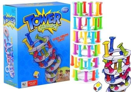 Emocjonująca Gra Wieża z Kolumnami 30 kolorowych filarów, 7 płyt. Najpierw zbuduj wieże z kolumn i dołączonych płyt, tak aby była jak najwyższa. Pamiętaj, aby wieża się nie przewróciła. Zasady gry: Gra polega na utrzymaniu jak najdłużej wieży w całości. Gdy wieża będzie już ułożona każdy z graczy po kolei rzuca kostką. Następnie gracz wyjmuje z chwiejnej wieży taki kolor kolumny jaki wskaże dołączona kostka do gry. Przegrywa osoba, która wyciągając kolumnę przewróci wieżę. Gra idealnie sprawdzi się w gronie rodzinnym. Wymiary opakowania: 30 cm x 25 cm x 15 cm