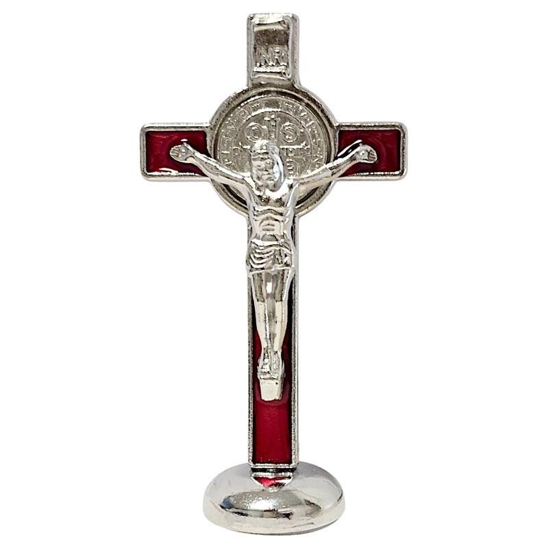 To klasyczny Krzyż Św. Benedykta, znany z silnej symboliki ochronnej i mocy egzorcyzmowania. Wykonano go z trwałego metalu w srebrnym kolorze z wyrazistym czerwonym wypełnieniem. Dodaje to krzyżowi głębi i podkreśla jego sakralny charakter. Czerwień symbolizuje miłość, poświęcenie i Bożą krew, wprowadzając poczucie siły i opieki.