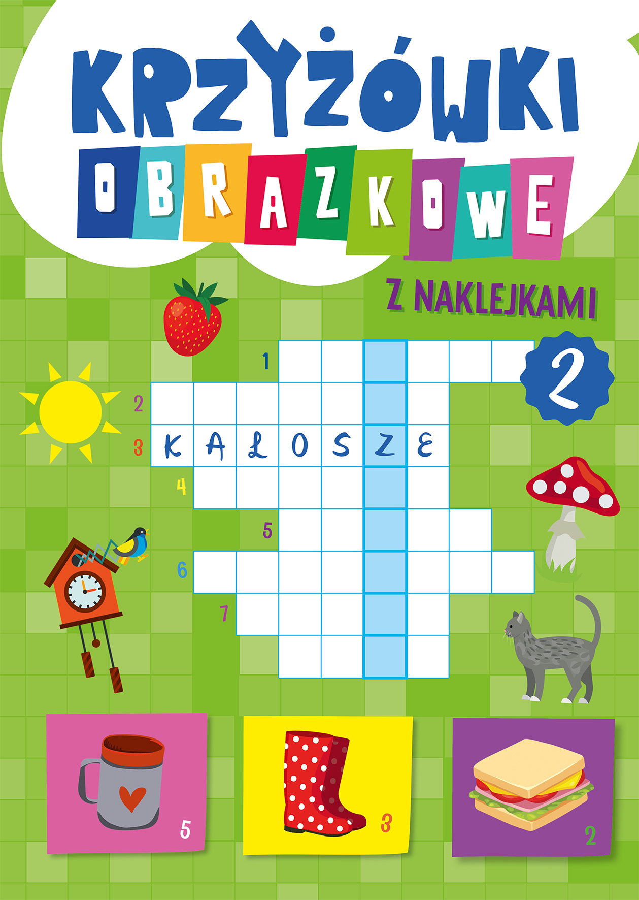 Pierwsze krzyżówki dla najmłodszych miłośników łamigłówek. Żeby rozwiązać szarady, dzieci muszą odgadnąć, co przedstawiają obrazki, odszukać właściwy obrazek wśród kolorowych naklejek i przykleić go, a dopiero potem wpisać właściwe słowo do diagramu. Zabawa doskonale rozwija spostrzegawczość i logiczne myślenie, dzięki niej dziecko ćwiczy koncentrację oraz doskonali umiejętność pisania.