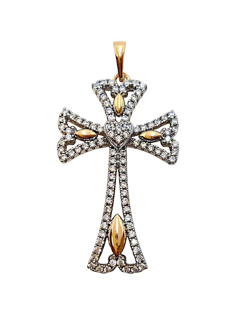 Luksusowy Krzyż Ażurowy z Sercem i Cyrkoniami - Majestatyczny Blask (42x25 mm)