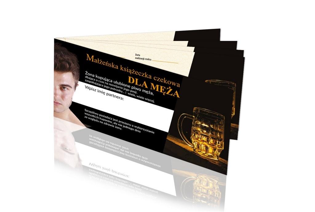 Małżeńska książeczka czekowa dla męża to prezent, który urozmaici życie każdej pary. W środku znajduje się mnóstwo przyjemności i prezentów przeznaczonych dla mężczyzny. Żona wciela się w rolę ""realizatorki"" czeków, pełnej kobiecej pasji i miłości do swojego męża. Małżeńska książeczka czekowa pozwala na wejście związku na poziom 2.0 - gdzie małżonkowie doskonale rozumieją swoje potrzeby i znajdują przyjemność w ich spełnianiu.