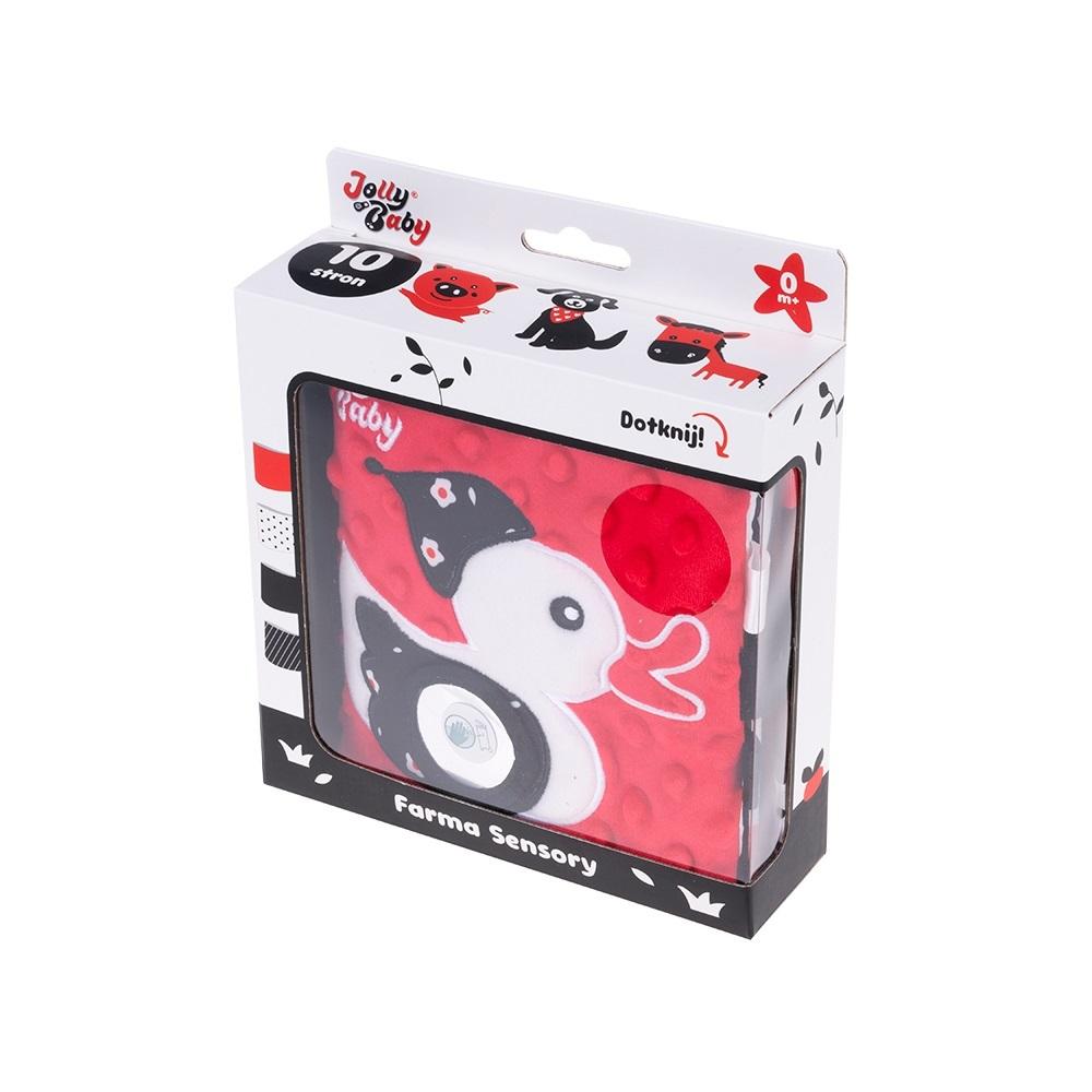 Ta materiałowa książeczka przybliży maluchom wiejskie zwierzątka, ucząc ich nazw. Na dziesięciu sensorycznych stronach znajdziemy podobiznę zwierzaka wraz z jego nazwą w języku polskim oraz angielskim. Okładka książeczki szeleści, co uatrakcyjnia zabawę i stymuluje zmysły malucha, a bezpieczne lusterko, w które została wyposażona, posłuży do samopoznania dziecka. Praktyczna zawieszka na rzep ułatwi zaczepianie książeczki w dowolnym miejscu.