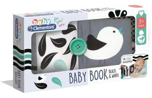 Miękka książeczka z czarno-białymi ilustracjami, które rozwijają percepcję wzrokową niemowląt w pierwszych miesiącach życia.