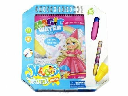 Książeczka + pisak do kolorowania wodą 26x25x3cm Wspaniały pomysł na świetną zabawę w domu. Magiczna książeczka do malowania wodą. Bezpieczna zabawka pozbawiona ostrych krawędzi, kreatywna zabawa bez brudu i bałaganu. Produkt w estetycznym opakowanie, pisak wodny w zestawie