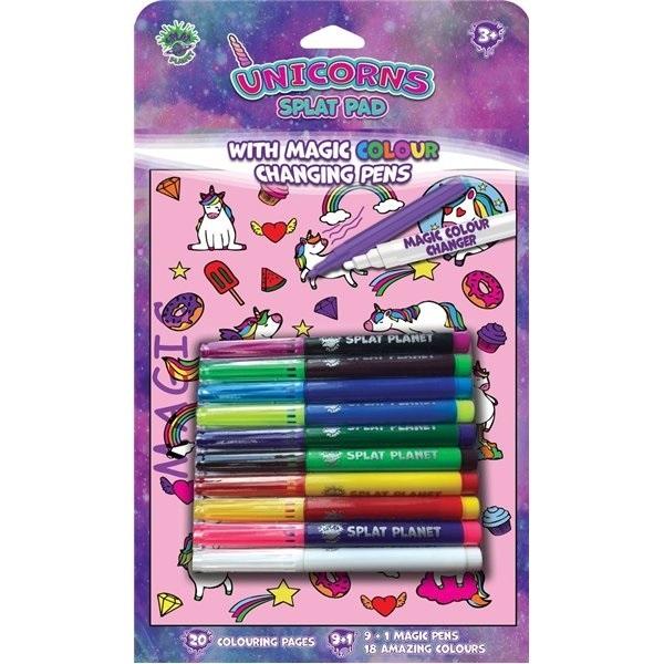Każdy mazak w tym zestawie zmienia kolor podczas rysowania. Wystarczy kilka ruchów, aby zobaczyć, jak kolory się przekształcają tworząc wielobarwne dzieła. To doskonały sposób na rozwijanie kreatywności, wyobraźni oraz umiejętności manualnych u najmłodszych. Każda książka zawiera 20 stron z różnymi motywami przewodnimi oraz 10 mazaków zmieniających kolor.