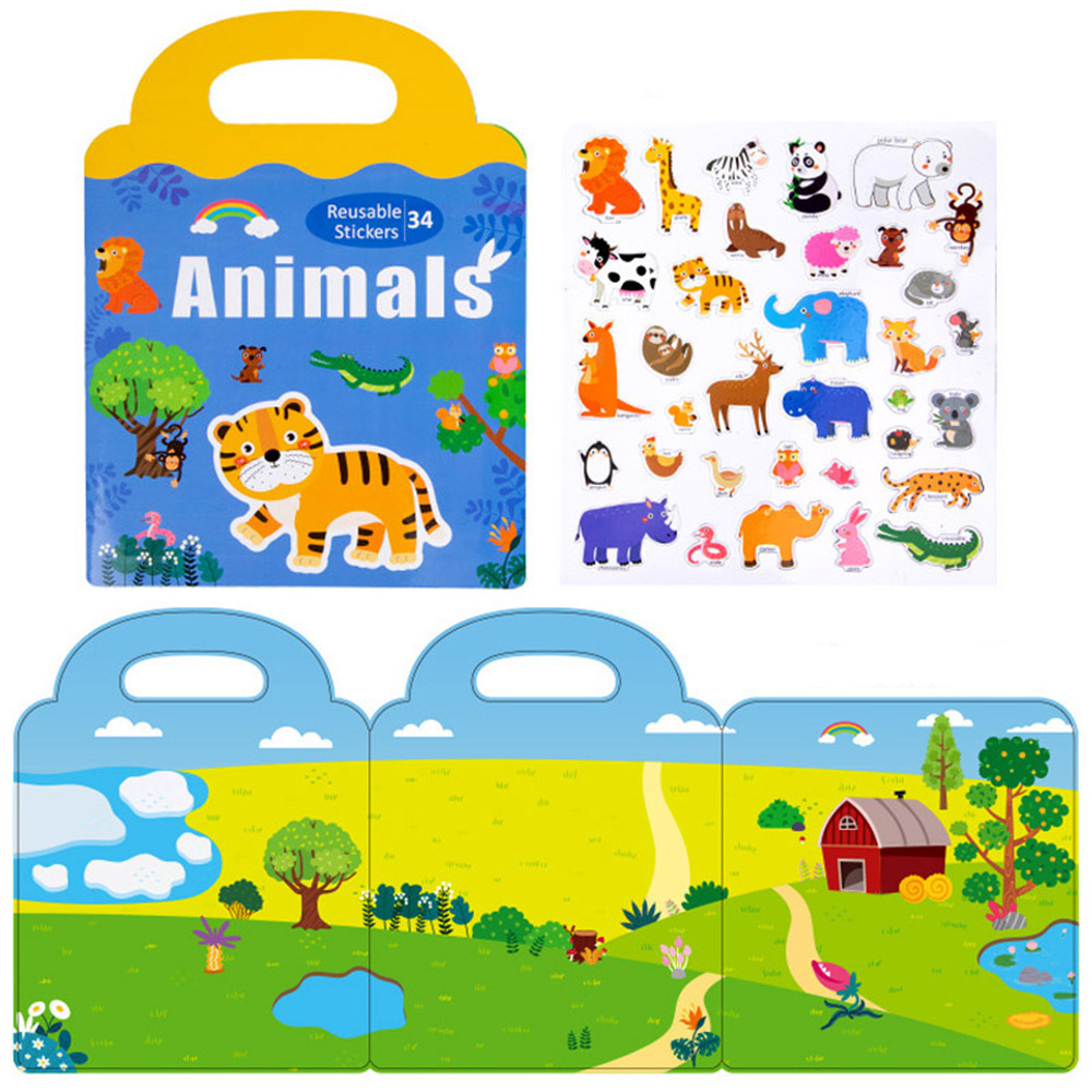 Książeczka z 34 naklejkami dzikich zwierząt, do wypełnienia w środku. Naklejki wielokrotnego użycia.
