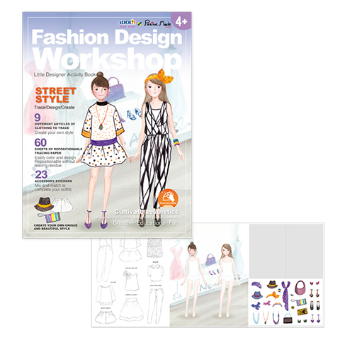 Książeczka zapakowana w folię. 4 wersje z rożnymi motywami modowymi.