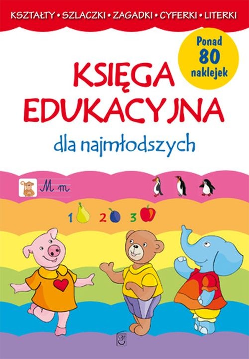 `Księga edukacyjna dla najmłodszych` to 80-stronicowy zbiór rozmaitych łamigłówek, zadań, ćwiczeń i zagadek wspomagających rozwój najmłodszych. Książkę wzbogacają kolorowe naklejki.