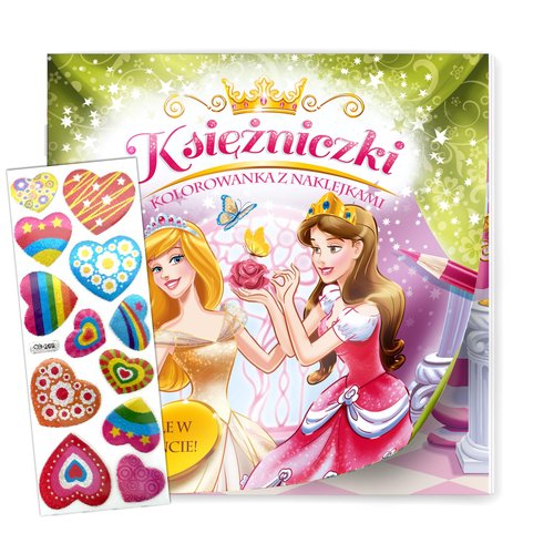 Kolorowanka Księżniczki zawiera zbiór baśniowych postaci. Piękne księżniczki uśmiechają się do malujących je dzieci. Baśniowe postacie wprowadzają w swój kolorowy świat i zachęcają do wspólnej zabawy. Zaproponuj swojemu „maluchowi” aby pokolorowane obrazki powiesił w swoim pokoju, będą cudownym urozmaiceniem otoczenia. Dodatkowy atut publikacji stanowi zestaw kolorowych naklejek i stickerów.