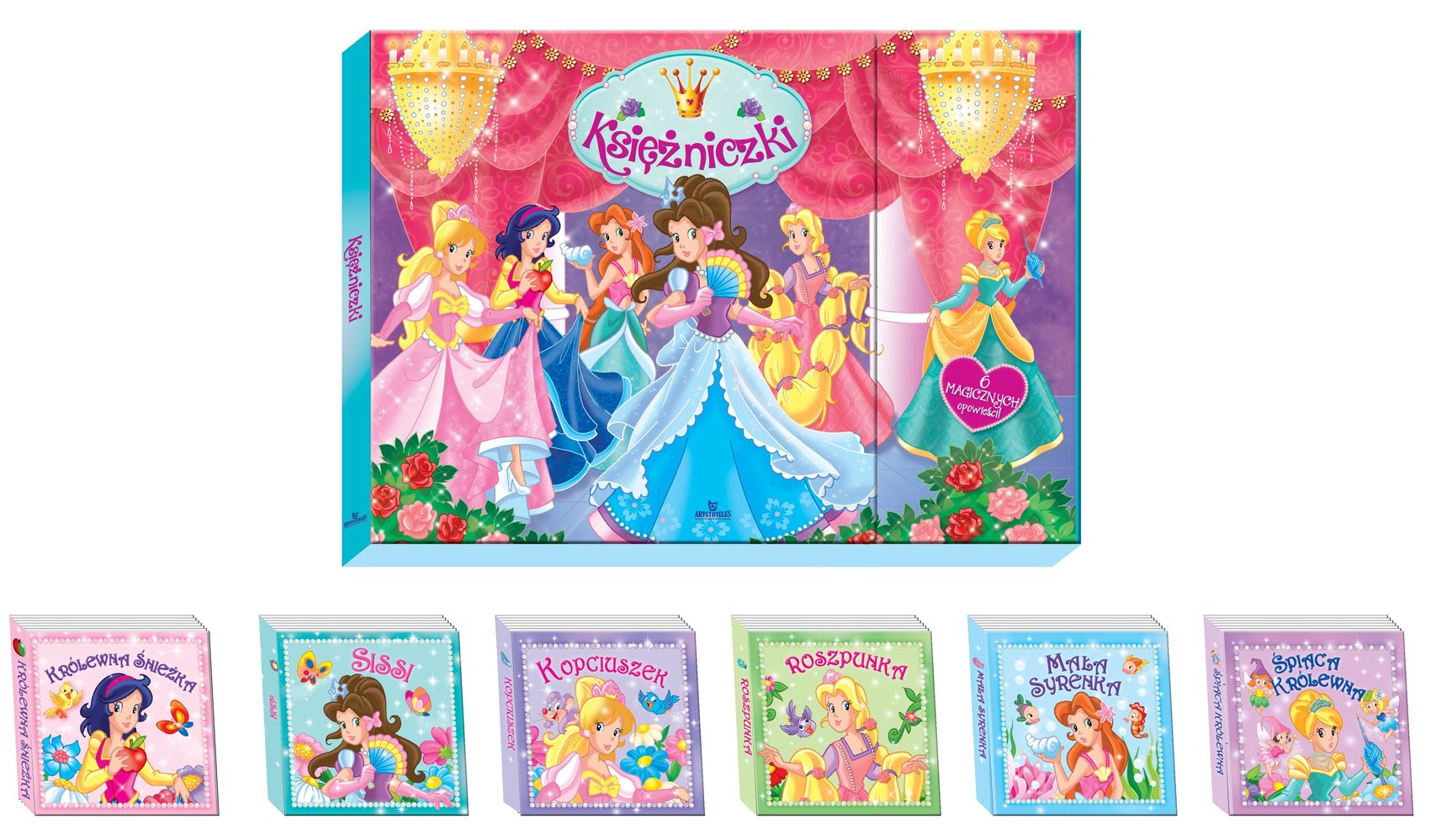 Przeczytaj zajmujące opowieści i odkryj zaczarowany świat księżniczek. Pudełko zawiera 6 książeczek: Królewna Śnieżka, Sissi, Kopciuszek, Roszpunka, Śpiąca Królewna, Mała Syrenka.
