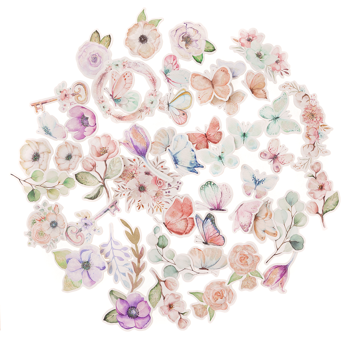 Brokatowe kształty papierowe Boho flowers & butterflies łączą delikatne, pastelowe kolory z wiosennymi motywami w stylu vintage. Znajdziesz wśród nich rozmaite wzory kwiatów, gałązek oraz motyli. W ofercie dostępne są również naklejki Boho flowers oraz Boho butterflies, które idealnie pasują do elementów z tego zestawu.