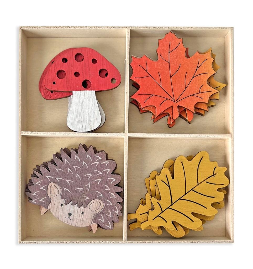 Opakowanie Kształty z drewna jesień 7cm 16szt
