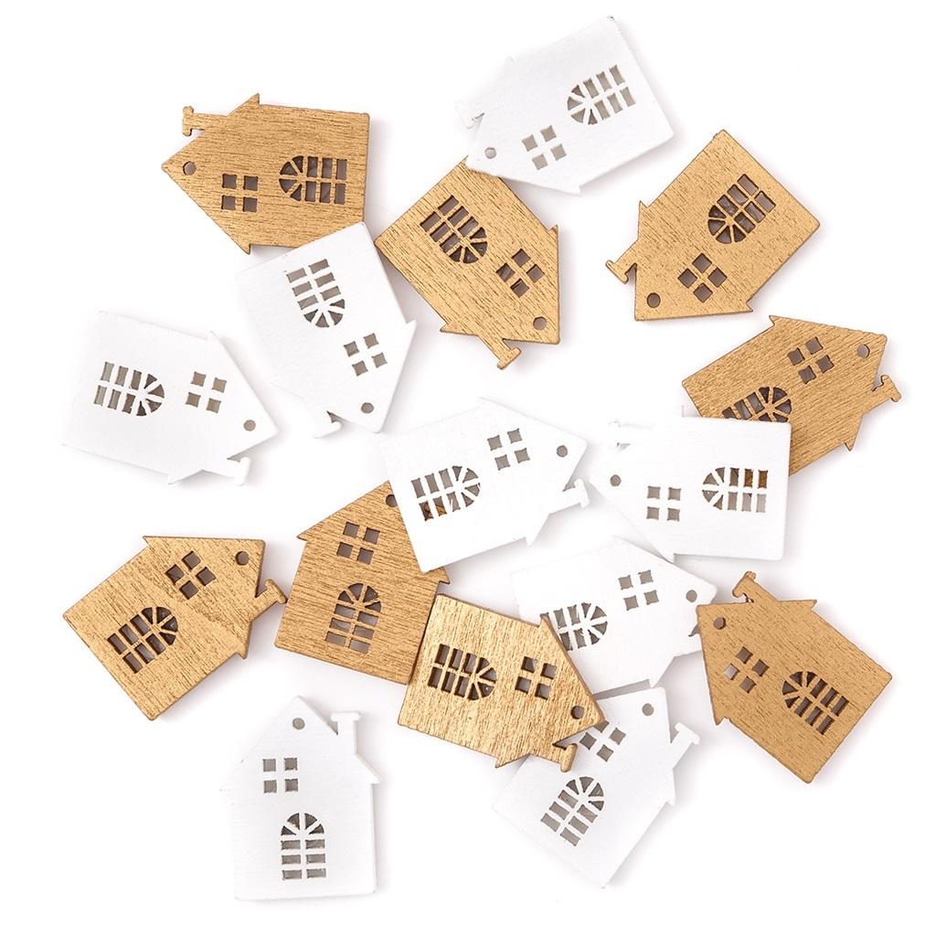 Samoprzylepne drewniane domki sprawdzą się jako świetny dodatek do zimowych i świątecznych prac kreatywnych. Na każdym domku znajduje się kropka z zabezpieczoną powierzchnią klejącą, która umożliwia szybkie i łatwe mocowanie elementów na różnych powierzchniach