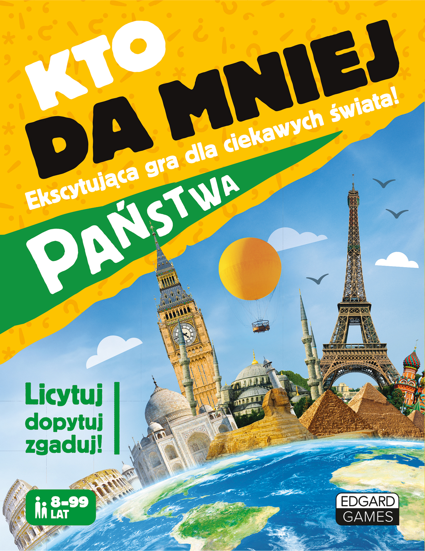 Kto da mniej Państwa to emocjonująca gra karciana dla całej rodziny. Podczas rozgrywki liczy się spryt, odwaga i umiejętność wyciągania wniosków. Zadaniem każdego z graczy jest odgadnięcie jakie państwa ukrywają się na kartach, przy jednocześnie jak najmniejszej liczbie zadanych pytań.