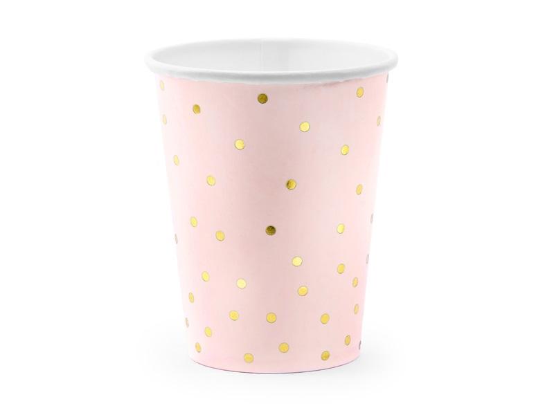 Kubeczki Kropki jasnoróżowe 260 ml 6szt