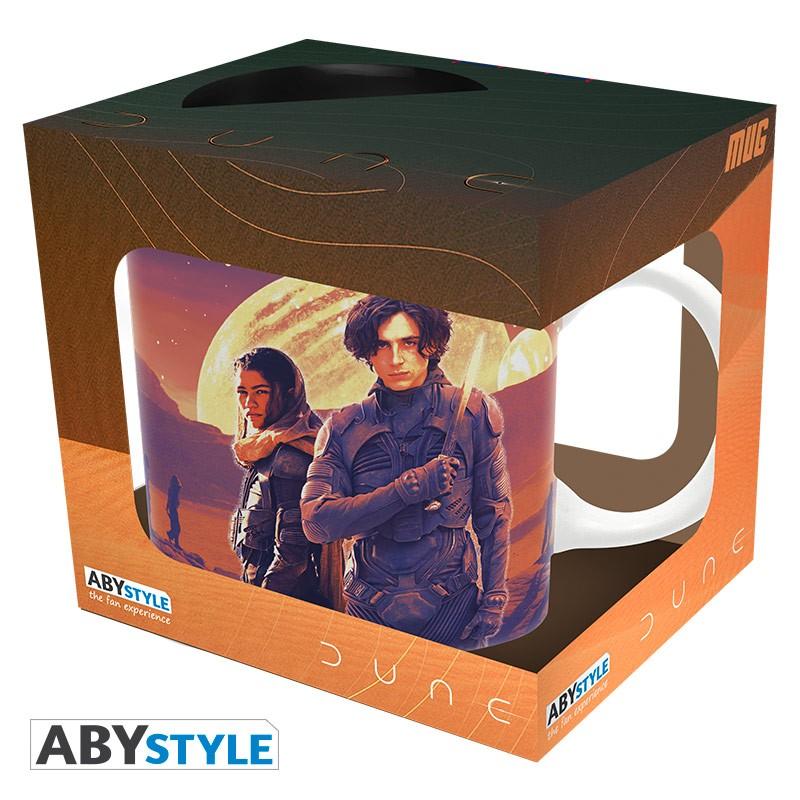Na kubku znajduje się grafika przedstawiająca głównych bohaterów, Paula Atreidesa i Chani, co sprawia, że jest to świetny sposób na wyrażenie miłości do serii "Diuna".