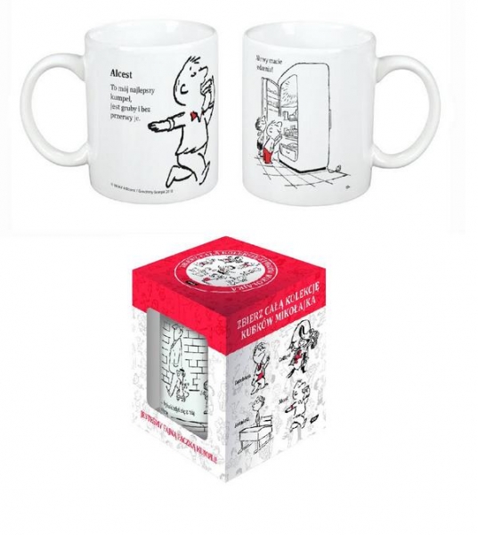 Kubek z wizerunkiem Alcesta, przyjaciela jednego z najbardziej rozpoznawalnych bohaterów literatury i kinematografii dziecięcej w Europie - Mikołajka. Kubek jest zapakowany w sztywne tekturowe pudełko z nadrukiem, co sprawia że idealnie nadaje się na prezent. Można go myć w zmywarce. Wys. 10,5 cm, szer. 10,5 cm. Od wielu lat książki z przygodami Mikołajka cieszą się ogromnym powodzeniem wśród wielbicieli małego urwisa. Przygody Mikołajka, Alcesta i innych jak zawsze rozbawią małych i dużych Mikołajkowa oferta Znaku obejmuje również kolekcję kubków z wizerunkiem Mikołajka oraz jego przyjaciół - Jadwini, Alcesta, Euzebiusza, Kleofasa, Gotfryda i Ananiasza. Wspaniałe ilustracje Sempégo wzbogacone zabawnymi tekstami Goscinny'ego sprawiają, że kubki stanowią doskonały prezent nie tylko dla najmłodszych.