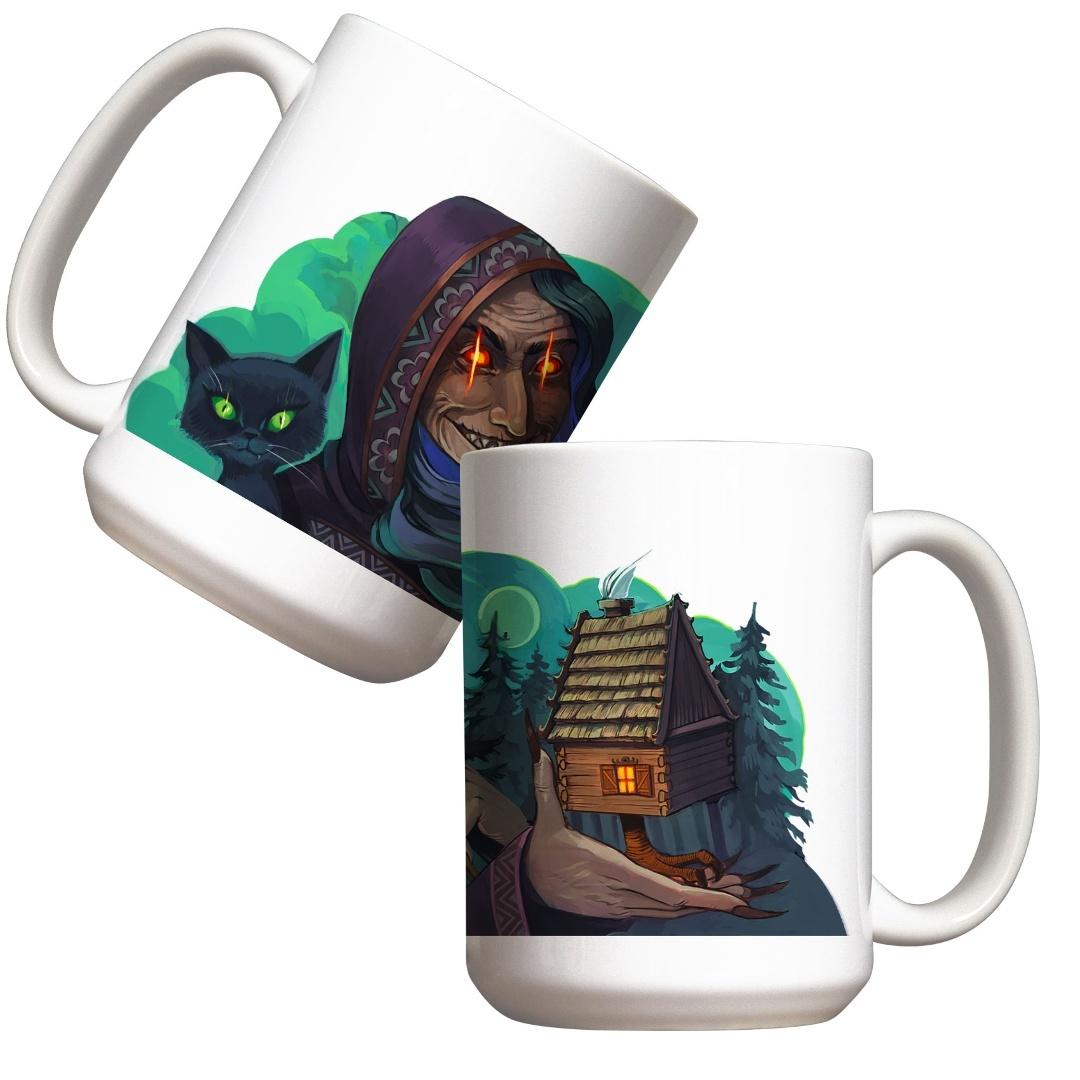 Kubek Baba Jaga z Czarnym Kotem i Domem na Kurzej Nodze Przenieś się w świat słowiańskich legend z naszym wyjątkowym kubkiem! Idealny dla miłośników mitologii i magii. Pojemność: 440ml Wysokość: 120 mm Średnica: 85 mm Materiał: ceramika