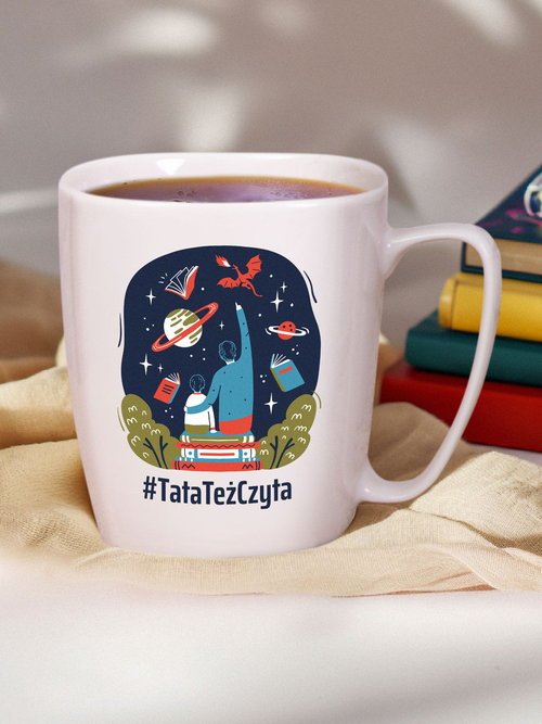 Zostań przewodnikiem swojego dziecka w podróży przez fascynujące historie. Każdy łyk to nowa przygoda, a każda strona książki to kolejny krok w budowaniu bliskiej relacji pomiędzy ojcem i dzieckiem. Sekretnym składnikiem jest szczypta magii czytania. Kubek z ilustracją BAŚNIOWA KRAINA to wymarzony prezent dla każdego ojca. To produkt wypełniony po brzegi serdecznością i rodzinnym ciepłem,, który pokocha każdy mężczyzna doceniający radość wychowywania swojego potomstwa. Ten kubek przypomni Ci, że tata też czyta! Podaruj go w prezencie albo kup dla siebie i ciesz się z nowego wymiaru oczytanych wieczorów. Sprawdzi się też jako upominek dla mola książkowego. Kubek został zaprojektowany w ramach kampanii społecznej #TataTeżCzyta. Część zysku ze sprzedaży każdego produktu z kolekcji #TataTeżCzyta przekazujemy na rzecz Fundacji Powszechnego Czytania. Kubek z porcelany Pojemność: 380 ml Pojemność użytkowa: 360 ml Nadruk po dwóch stronach kubka, logo na spodzie Można myć w zmywarce