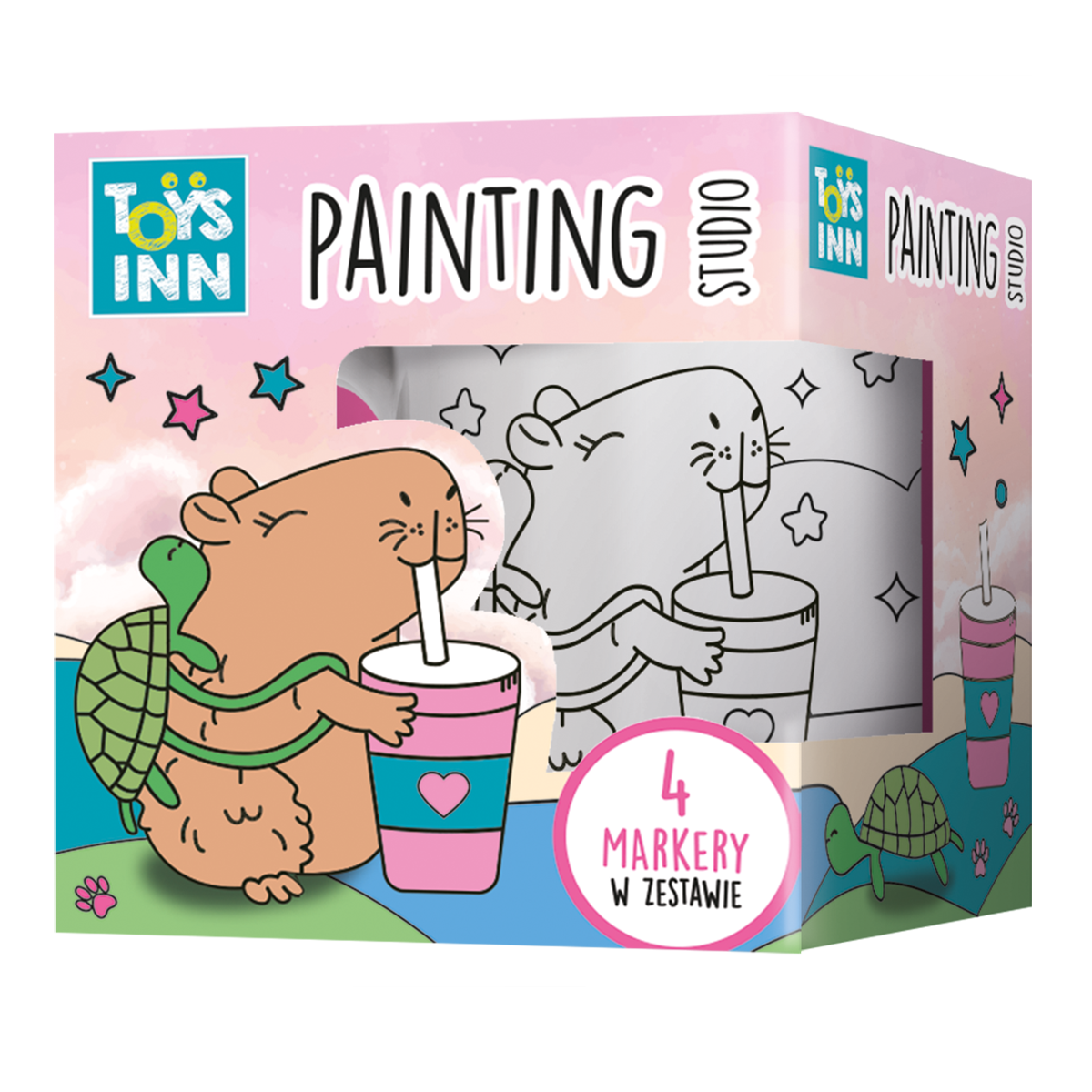 Ceramiczny kubek do kolorowania Kapibara od ToysInn to świetna, kreatywna zabawa. W zestawie znajdują się markery w czterech kolorach: żółtym, pomarańczowy, niebieskim, fioletowym. Dzięki nim, każde dziecko, w oryginalny sposób może ozdobić swój kubek. Całość spakowana jest w ozdobne, tekturowe pudełeczko.