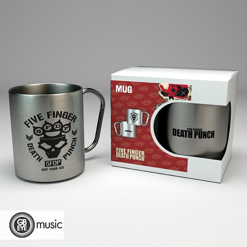 Kubek "FIVE FINGER DEATH PUNCH  Mug carabiner Got Your Six" to idealny gadżet dla fanów zespołu Five Finger Death Punch.