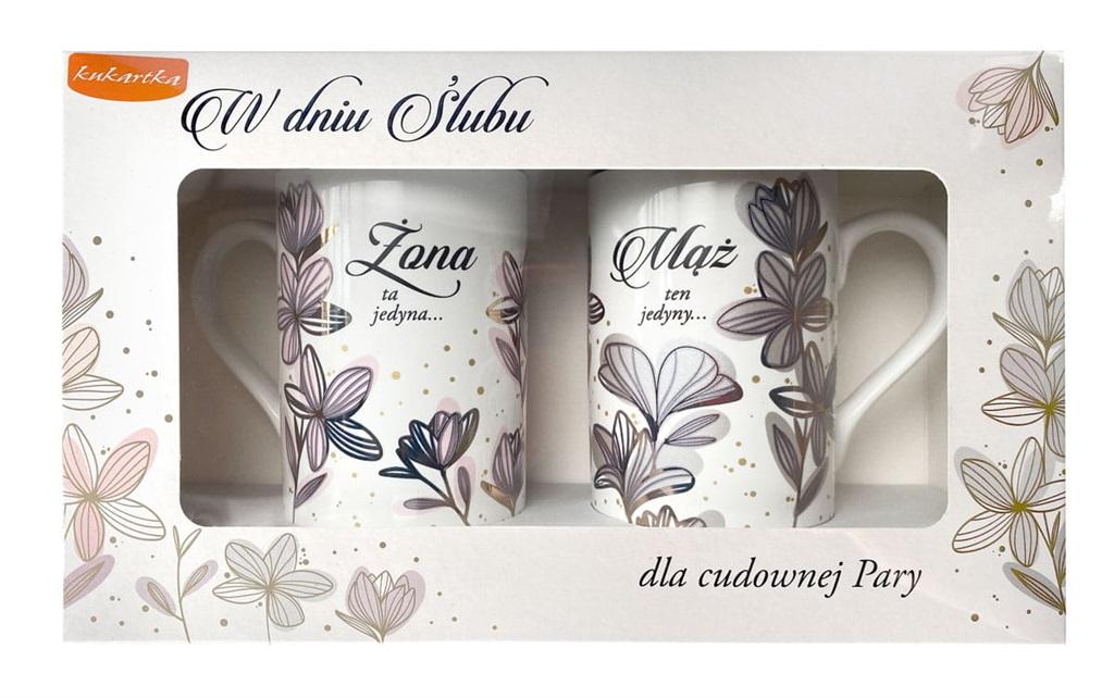 Opakowanie Kubek komplet Q Ślub Jedyna Żona/Mąż, kwiatki