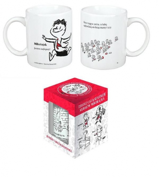 Kubek z wizerunkiem jednego z najbardziej rozpoznawalnych bohaterów literatury i kinematografii dziecięcej w Europie - Mikołajka.  Kubek jest zapakowany w sztywne tekturowe pudełko z nadrukiem, co sprawia że idealnie nadaje się na prezent. Można go myć w zmywarce. Wys. 10,5 cm, szer. 10,5 cm.  Od wielu lat książki z przygodami Mikołajka cieszą się ogromnym powodzeniem wśród wielbicieli małego urwisa. Przygody Mikołajka, Alcesta i innych jak zawsze rozbawią małych i dużych. Mikołajkowa oferta Znaku obejmuje również kolekcję kubków z wizerunkiem Mikołajka oraz jego przyjaciół - Jadwini, Alcesta, Euzebiusza, Kleofasa, Gotfryda i Ananiasza. Wspaniałe ilustracje Sempégo wzbogacone zabawnymi tekstami Goscinny'ego sprawiają, że kubki stanowią doskonały prezent nie tylko dla najmłodszych.