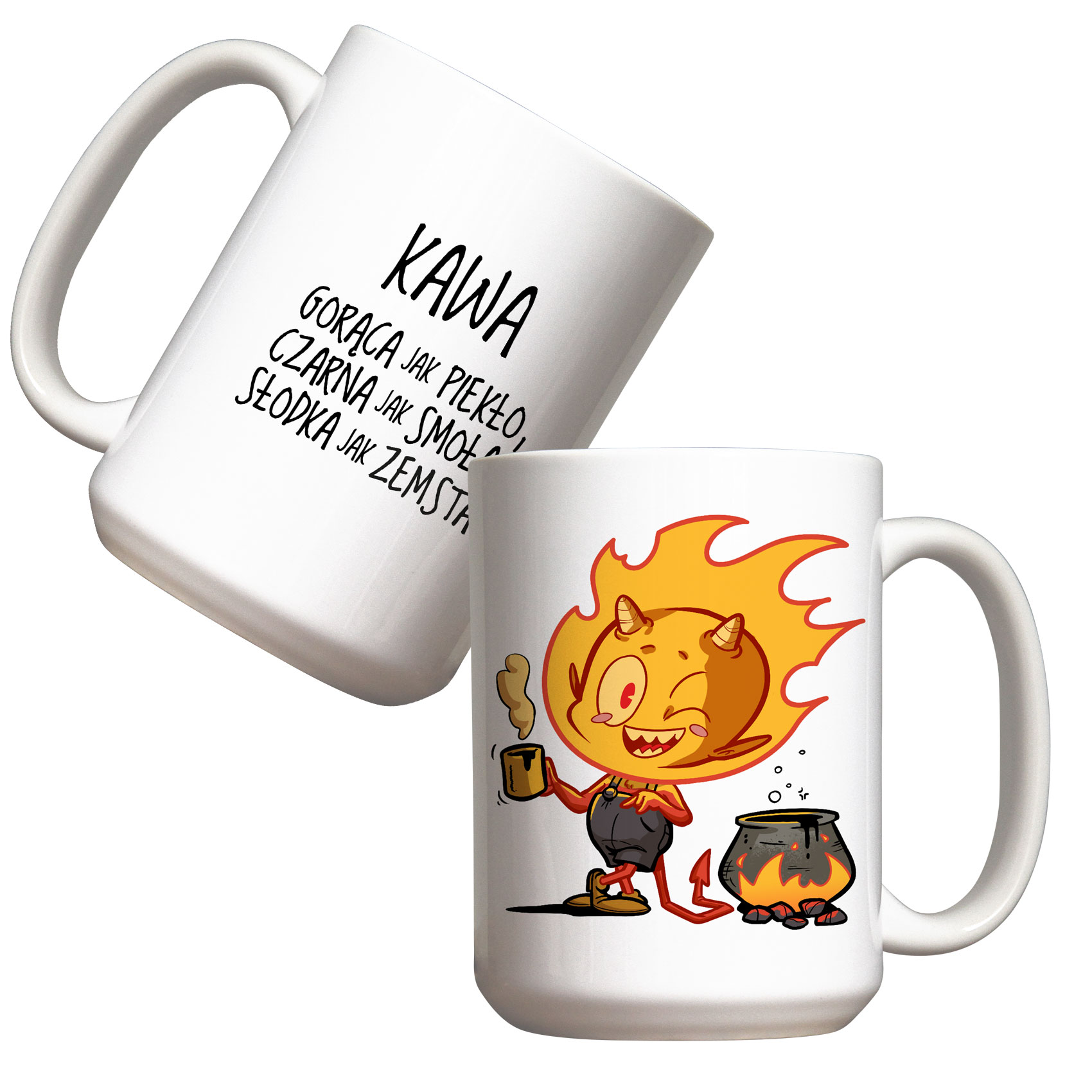 Kubek dla tych którzy lubią kawę gorącą jak piekło! Pojemność: 440ml Wysokość: 120 mm Średnica: 85 mm Materiał: ceramika