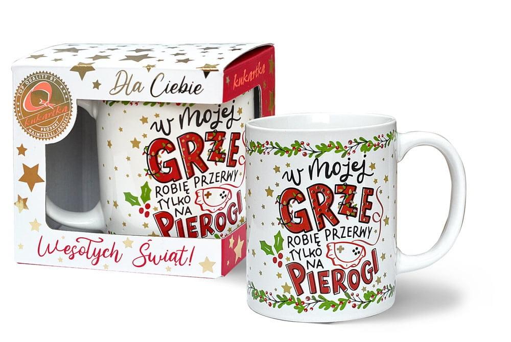 Kubki Premium Kukartka to połączenie elegancji, dobrego wzornictwa i jak zwykle - świetnych tekstów. Każdy kubek Premium to idealny pomysł na prezent na wyjątkową okazję - wzory są oryginalne, zdobione złotem i pakowane w piękne pudełeczko. *OPAKOWANIA WYSTĘPUJĄ W RÓŻNYCH KOLORACH: CZARNY, NIEBIESKI, GRANATOWY, RÓŻOWY, BIAŁY I MIĘTOWY. KOLORY OPAKOWAŃ SĄ WYBIERANE LOSOWO. Cechy szczególne: Typ produktu: kubek na prezent, Materiał: porcelana, Pojemność: 300ml Opakowanie: ozdobny kartonik złocony, Okazja: Boże Narodzenie