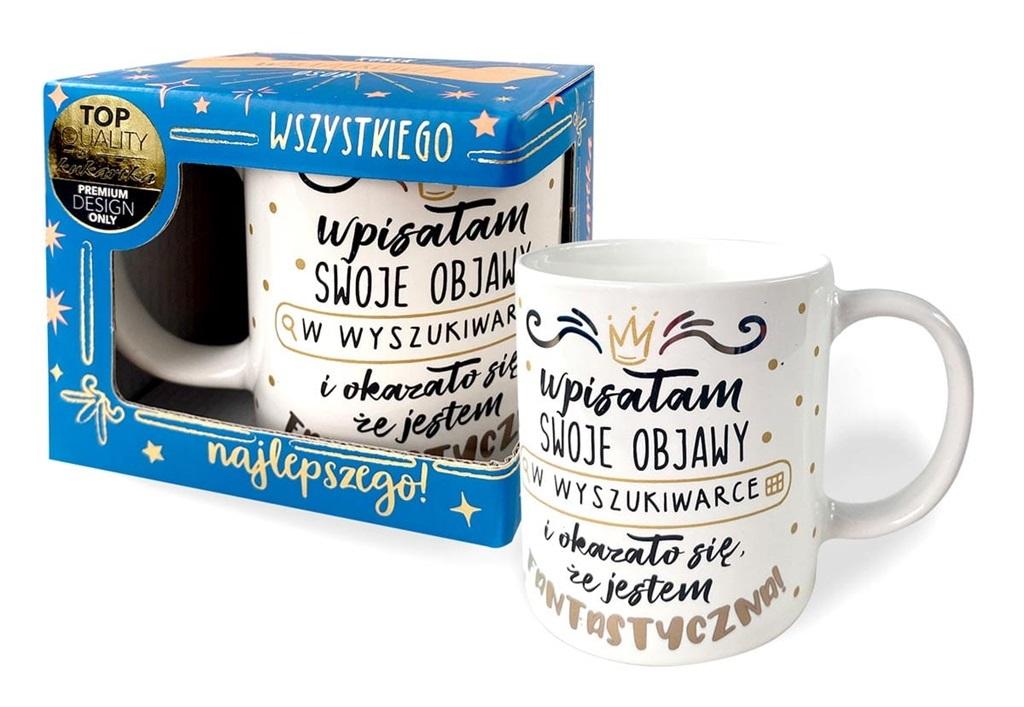 Kubki Premium Kukartka to połączenie elegancji, dobrego wzornictwa i jak zwykle - świetnych tekstów. Każdy kubek Premium to idealny pomysł na prezent na wyjątkową okazję - wzory są oryginalne, zdobione złotem i pakowane w piękne pudełeczko. Cechy szczególne: Typ produktu: kubek na prezent, Materiał: porcelana, Pojemność: 300ml