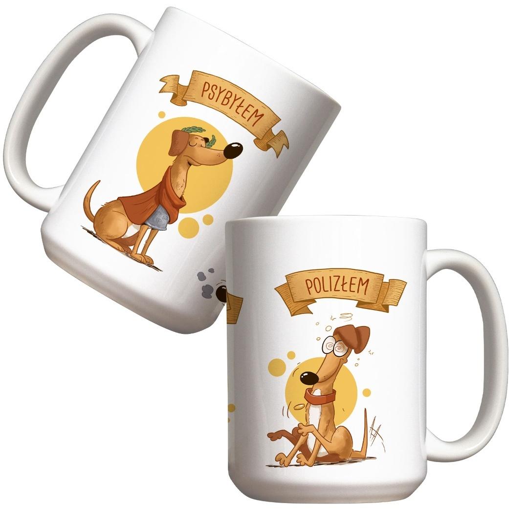 Psybyłem. Powąchłem. Polizłem. Czyż nie jest to idealny dzień z życia psa? Kubek z unikalnymi grafikami, który rozjaśni Twój dzień. Pojemność: 440ml Wysokość: 120 mm Średnica: 85 mm