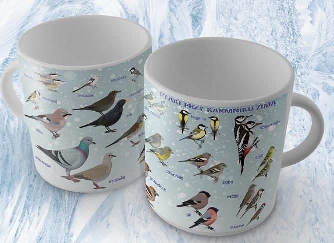 ubeczek przedstawiający wizerunki ptaków, które znajdziecie zimą przy karmniku