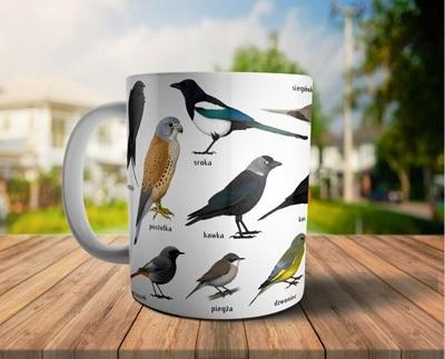 Na kubku znajdziesz wizerunek jerzyka i i innych ptaków często żyjących w mieście: pustułki, sroki, kawki, kosa, sierpówki, grzywacza, bogatki, gołębia, pliszki siwej, szpaka, oknówki, modraszki, wróbla, mazurka, dzwońca, piegży, kopciuszka.